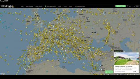 Comparison of airplanes numbers in sky in Covid-19 lockout vs now over Europe