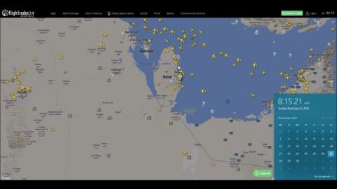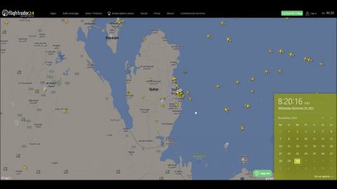 Flight space over Qatar, Doha Doha International Airport and Hamad International Airport in the time