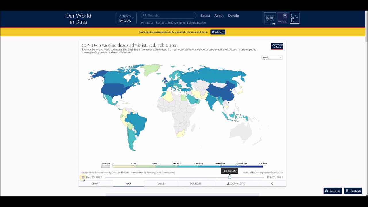 Number of COVID-19 vaccination doses administered chart, map and table – February 21, 2021