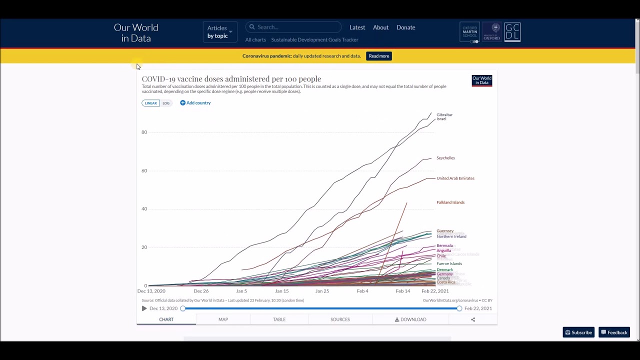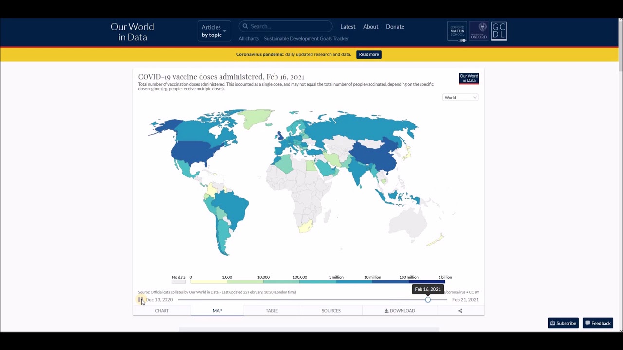 Number of COVID-19 vaccination doses administered chart, map and table – February 22, 2021