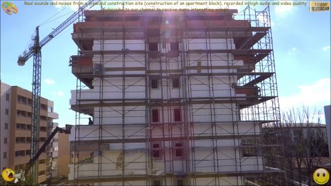Real sounds and noises from a crowded construction site (construction of an apartment block)